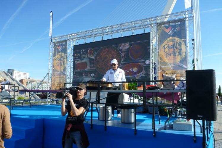 Am Samstagmorgen präsentiert sich die beeindruckende Marathonmesse (möglichst früh erscheinen, mittags ist die Hölle los) in einem herausragenden Ambiente (Ausweis nicht vergessen!) und dem großen Ereignis gleichermaßen quantitativ wie qualitativ angemessen. Klasse, daß auch hier, Wien durchaus vergleichbar, die Pasta-Party einen stark regionalen Einschlag besitzt: Sie entpuppt sich nämlich als Paella-Party, und das aus gutem Grund: Das spanische Reisgericht aus der Pfanne wurde hier erfunden („Paella Valenciana“) und ist das Nationalgericht der Region Valencia und der spanischen Ostküste. Der Begriff paella kommt aus dem Katalanischen (um 1892, Valencia gehört allerdings nicht zu Katalonien) und hat seinen Ursprung im lateinischen Wort patella (eine Art große Platte oder flache Schüssel aus Metall). Wir erinnern uns, leidgeprüft, an unsere gleichnamige Sehne. Um 1900 adaptierten die Valencianer das Wort Paella für die Metallpfanne, in der ihr Nationalgericht zubereitet wird. Neben diesem kredenzt man uns zusätzlich Radler, Cola, Brot und eine große (schälbare) Orange, so ist das in der Startgebühr inkludierte Mittagessen bereits gesichert. Und schmeckt hervorragend.