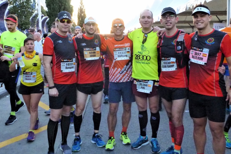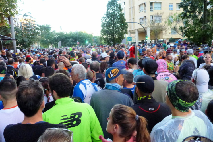 Allerdings habe ich aufgrund meiner späten Anreise den heute Morgen für 9 Uhr angesetzten Frühstückslauf über 5 km leider nicht wahrnehmen können, was ich nach der tollen diesjährigen Erfahrung in Paris sehr bedauere. Dessen schätzungsweise 2.000 Teilnehmer hat Álex Heras Lorente, der Kommunikationschef, als ich mit ihm ins Gespräch komme, gar nicht mitgezählt. „Wir erwarten morgen 30.500 Läufer aus mehr als 90 Nationen, davon alleine 22.000 über die Königsstrecke“, teilt er mir nicht ohne Stolz mit. Dabei waren beide Strecken schon lange im Vorfeld ausverkauft. Ich bin gespannt zu beobachten, ob die Strecke noch mehr Volk verträgt. Wer ganz nach oben schielt, denkt bestimmt auch über eine Erhöhung der Teilnehmerzahl nach. Erhöhen darf sich gerne auch die Zahl der germanischen Teilnehmer, die mit nur 308 auffallend niedrig ist. An Dr. Herbert Adams („Ihr seid aber auch überall!“) aus Mörfelden-Walldorf – wir schwärmen uns gegenseitig von den schönsten Laufzielen vor – und mir liegt's jedenfalls nicht.