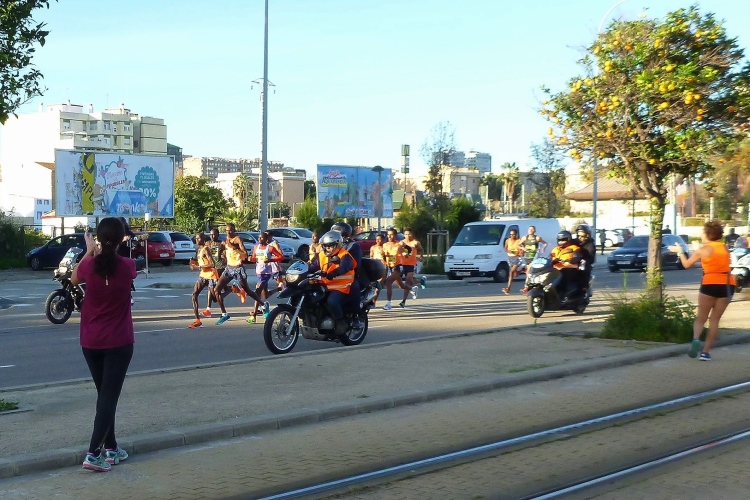 Kurz hinter km fünf kann ich auf der Gegenseite den gemischt äthiopisch/kenianischen Afrikaexpress ablichten, der, in beeindruckendem Tempo laufend, bereits kurz vor der Halbzeit steht. Die Jagd auf den Streckenrekord von 2:05:15 Std. ist in vollem Gange. Am Ende wird er von drei Athleten unter 2:05 Std. unterboten und die neue Marke auf 2:04:31 Std. gedrückt. Paco Borao, dem Präsidenten gleichermaßen des ausrichtenden SD Correcaminos (Road Runner) und der AIMS, kann es nur recht sein in seinem Bestreben, den Lauf in die Topelite der Veranstaltungen zu führen.