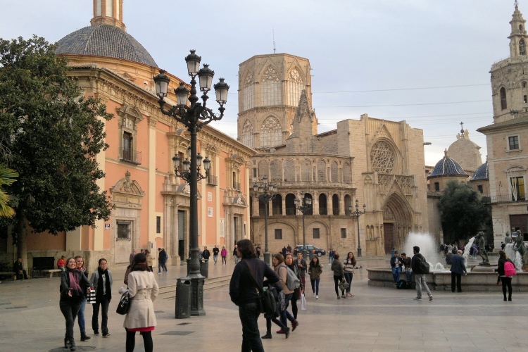Mit der neuen Metro geht es günstig in 20 Minuten zum Nordbahnhof, der sich paradoxerweise im Süden der Altstadt befindet. Dann zu Fuß weiter ins Hostal an der Kathedrale. Da merkt man doch, dass die Stadt nicht klein ist. Immerhin zählt sie fast 800 000 Einwohner. Mich beeindruckt wieder einmal, wie man innerhalb kurzer Zeit in einer ganz anderen Kultur ankommen kann. Und es ist auch noch länger hell als zu Hause, weil Spanien zwar viel westlicher liegt, aber dennoch der mitteleuropäischen Zeitzone angehört.