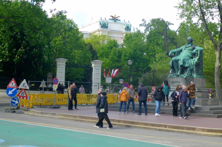 Und schon sind wir im 2. Bezirk Leopoldstadt und begeben uns in die Häuserschluchten Wiens. Die Temperatur ist noch sehr frisch, mein letzter Blick auf ein Thermometer beim Verlassen des Hotels zeigte frostige 3 Grad, bis 10 sollen es heute noch werden. Wenigstens ist der Sonntag komplett trocken gemeldet, ein Trost nach den gestrigen nassen Läufen.
