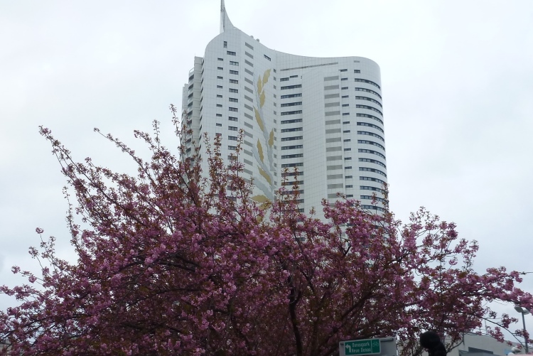 Die sonntägliche Startaufstellung befindet sich auf dem Landstreifen zwischen alter Donau im Rücken und dem heutigen Donauverlauf in Richtung Stadtzentrum voraus. Rechts neben uns liegt als „UNO-City“ das internationale Zentrum mit u.a. dem Millennium-Tower und der Internationalen Atomenergie-Organisation. Unmittelbar rechts von uns ist der „Muhammad-Asad-Platz“ zu Ehren des 1900 als Leopold Weiss im damaligen österreich-ungarischen Lemberg geborenen konvertierten islamischen Gelehrten, Diplomaten und Korrespondenten. Und ich bete, dass es heute keine Bekloppten geben möge.