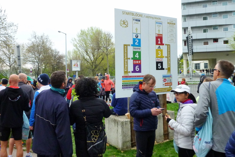 Die Elite und die ersten beiden von sechs Startblöcken schickt man mit Johann Strauß' Kaiserwalzer auf die Reise. Reichlich ungewohnt ist dies, wenn man AC/DC & Co. gewohnt ist, aber es passt hervorragend zur Stadt, selbst wenn man zu dieser Art von Musik keinen Draht haben sollte. Zwanzig Minuten später geht es auch für uns als zwei unter 9.418 gemeldeten Marathonern (6.483 im Ziel) los, begleitet vom Walzer „An der schönen blauen Donau“.