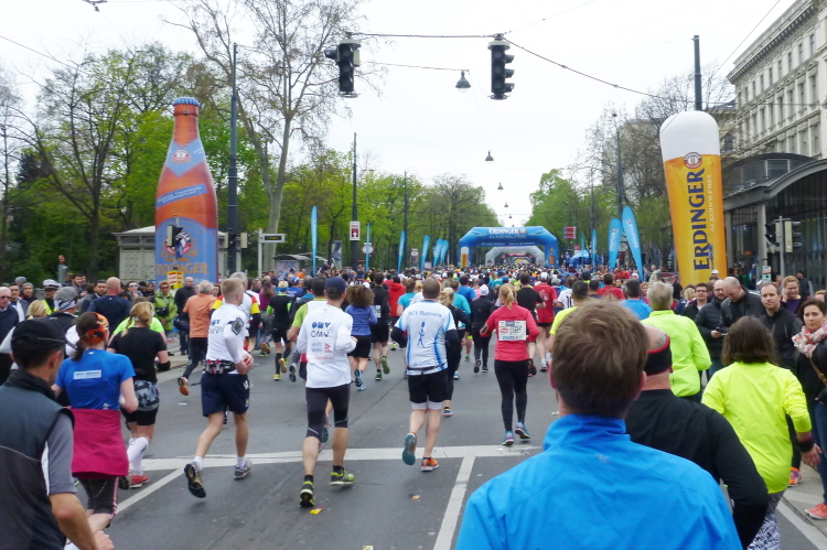 Hinter dem Museum für angewandte Kunst und dem geschichtsträchtigen, von Einheimischen wie Touris gleichermaßen gerne besuchten Stadtpark mit seinem historischen Kursalon im Stil der italienischen Renaissance, kommen wir zu km 10. Die ebenfalls zu gut verpacken Mädels des Sponsors Erdinger krallt sich direkt der Klaus und nutzt so schamlos die temporäre Abwesenheit der Gattin aus. Es wird auf ewig mein Geheimnis bleiben, Klaus, versprochen!