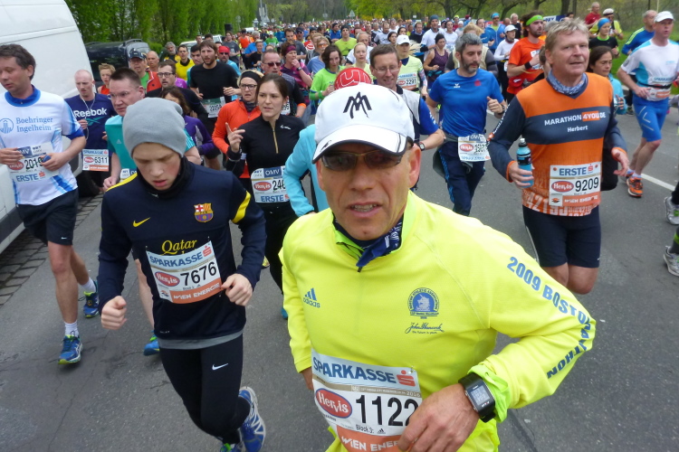 Überhaupt nichts zu lästern gibt es dagegen bei meinem anderen österreichischen Co-Autoren und „Marathon Maniac“ Anton Reiter, dem Mitbegründer des 100 Marathon Club Austria, bei seinem neunten Auftritt in Wien. Erst mit 47 Jahren sein Marathon-Debüt gebend, wollte er eigentlich nur besser in Form kommen. 54 Marathons ist der 62-jährige im Jahr 2013 gelaufen, heute feiert er sein 250. Marathon-Jubiläum. Seine Ziele? „300 Marathons bis zum 65. Geburtstag – und so lange wie möglich laufen." Alles Gute dabei, Anton!