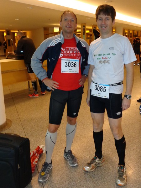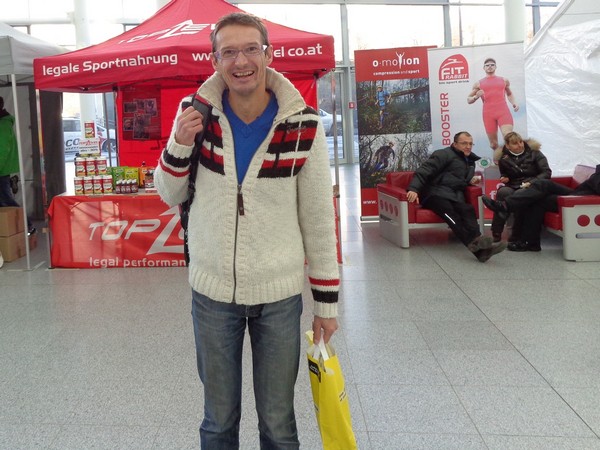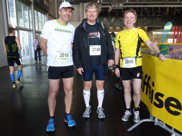 Ich treffe erste Bekannte: Gerno macht Werbung für den Bilstein-Marathon am 6. April. Wir haben uns im Vorjahr hier kennengelernt. Marc, ein Bekannter vom Marrakesch-Marathon, ist wie angekündigt hier. Von den österreichischen Marathonsammlern ist fast alles da, was Rang und Namen hat. Gerhard Wally fehlt leider verletzungsbedingt.