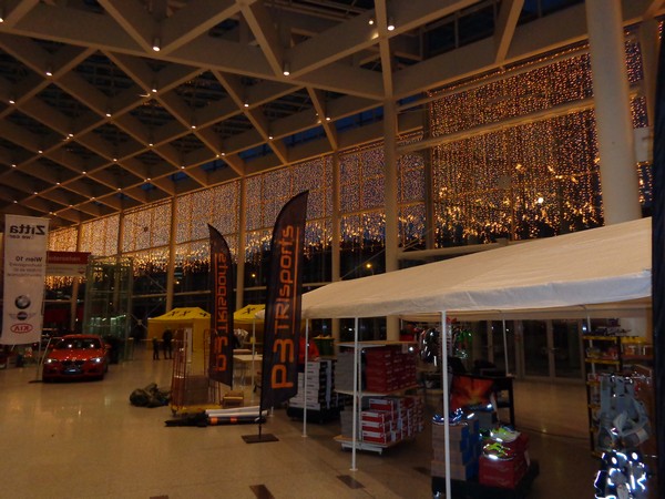 Die Strecke ist nur in unmittelbarer Startnähe für Zuseher einsehbar, ansonsten säumen vereinzelte Streckenposten und Sanitäter die Strecke. Die Möglichkeiten zum Anfeuern beschränken sich auf wenige Meter. Dicht gesät sind die Begegnungsstrecken, bald hat man einen Überblick, wer alles am Start war. Nach der ersten Halle geht es raus in den Verbindungsgang, und bald in rechtem Winkel in die zweite Halle rein. Auch hier weite Kurvenradien und Musik aus der Konserve. In den Hallen ist es etwas kühler als am Gang. Mit dem Grip bin ich zufrieden, vielleicht liegt es an den ziemlich neuen Schuhen? Nach der zweiten Halle wieder raus auf den Gang und ganz zurück, hier beiderseits Glaswände. Fotografen sind unterwegs, Fotokameras sind installiert und knipsen jeden jedes Mal. Da müssen Unmengen an Bildern zusammen gekommen sein.
