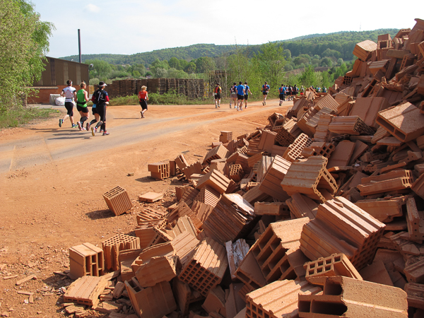Über rotem Lehmboden führt die Strecke an der Ziegelei Zeller (Zeller Poroton) vorbei. Seit fast 200 Jahren befindet sich diese in Familienbesitz und seit über 150 Jahren werden aus dem Lehm hier die Ziegel gefertigt. Eine Informationstafel am Weg weist mich darauf hin, dass ich mich nun auf dem europäischen Kulturrundweg Alzenau 2 „Wald und Wallfahrt“ befinde.
