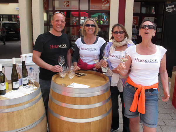 Mächtiges Spektakel klingt durch die Weinberge. Es sind die Herzstückchen, die jubelnd am „steinernen Häuschen“ alle erschöpften Weinbergskletterer empfangen. Vielen Dank für das Erlebnis an das Weingut Eich. Der Ausblick, noch mehr Belohnung für die Anstrengungen der letzten steilen Stufen. Ein Blick, ein Foto und schon geht’s wieder abwärts. Einige wenige flache Kilometer und das nächste Highlight ist erreicht.