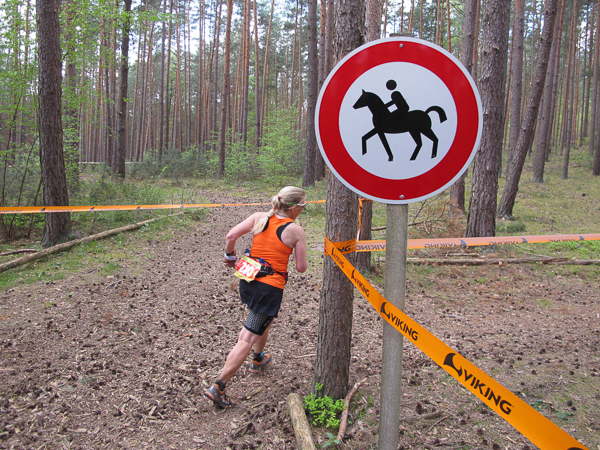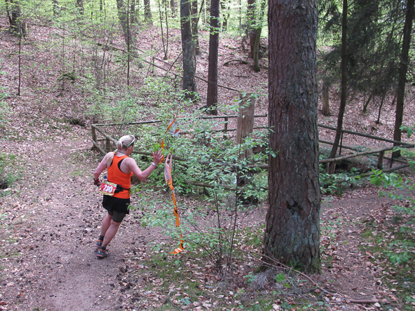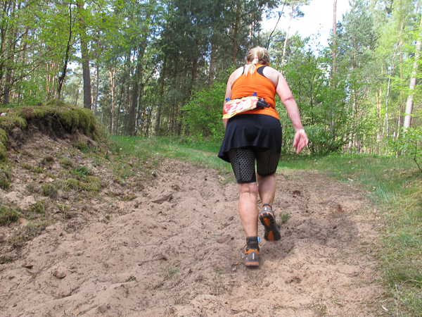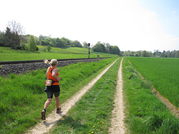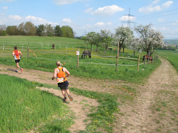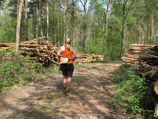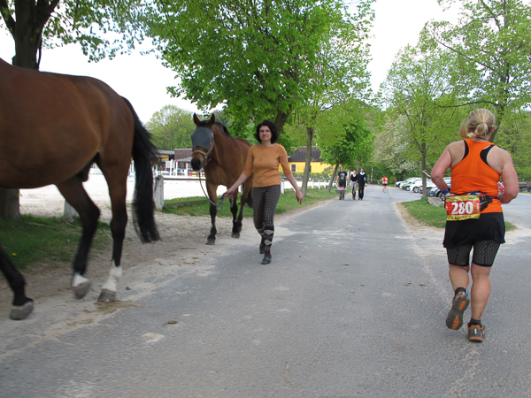 Dieses Zitat stammt von H. Burda. Ich bin mir sicher, er dachte dabei nicht an die Staubstrecke die wir gerade zurücklegen. Wir passieren einen großen Reitplatz. Ich denke mir noch, wie niedlich die paar wenigen Meter Sand. Aber das Geläuf bleibt so, die Strecke führt lange auf einem traumhaft schönen Reitweg weiter. Für Pferdehufe sicherlich eine Wohltat, für müde Läuferwaden noch eine weitere Herausforderung. Hinter mir höre ich es wiehern und keuchen. Da sind eben ein paar Outdoor-Enthusiasten die Gäule durchgegangen. Aber sie wurden anscheinend eingefangen, überholt haben sie mich jedenfalls nicht.