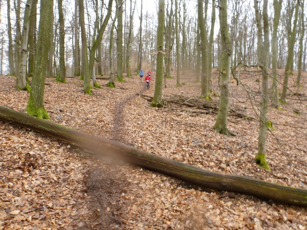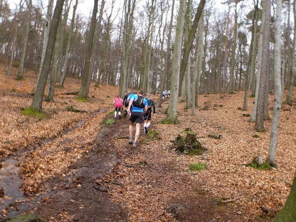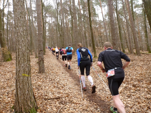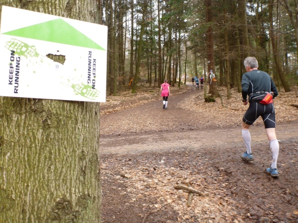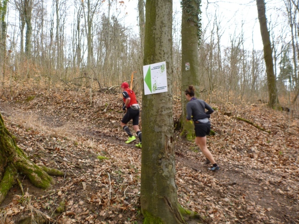 Wer hier sauber in seinem regelmäßigem Tempo laufen will, kann das gleich vergessen. Jeder Kilometer ist anders und ausgeschildert wird nicht einzeln, sondern alle fünf, aber rückwärts. Nachdenken brauchst du da nicht, sondern das Gehirnschmalz ist für die Bodenüberwachungsaufgabe notwendig, denn Wurzeln und Äste liegen herum. Nicht jeder nimmt das ernst, bei den ersten braucht es schon die (A-)Backenbremse.