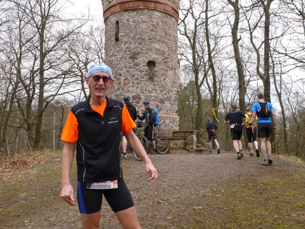 Der folgende Abschnitt von etwa sieben, acht Kilometer führt um den Ludwigsturm, das Wahrzeichen des Hahnenkamms. Der Turm ist weithin sichtbar. Gerade einmal fünf Minuten laufen wir auf einem breiteren Waldweg, dann geht es wieder offroad und entsprechend ruppig dahin.