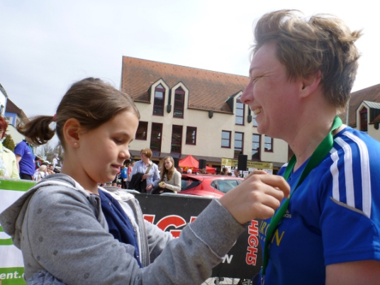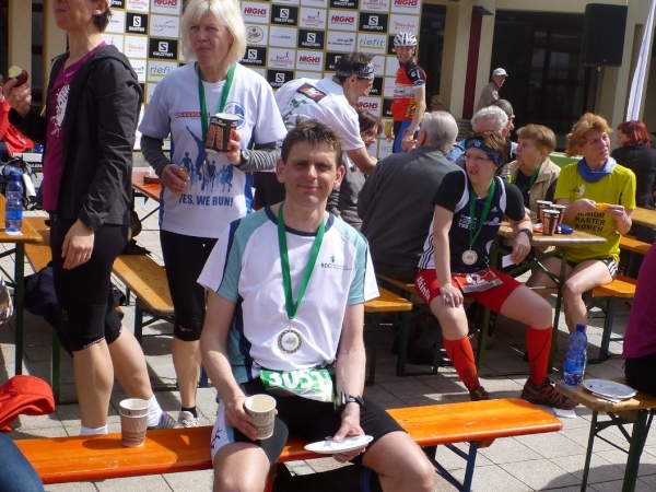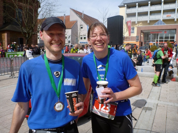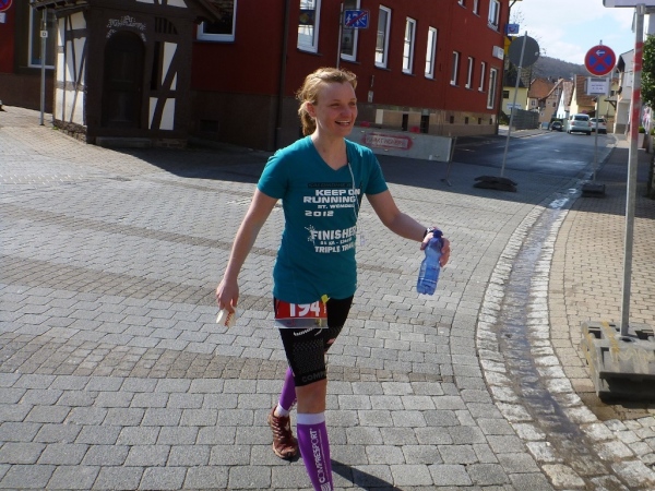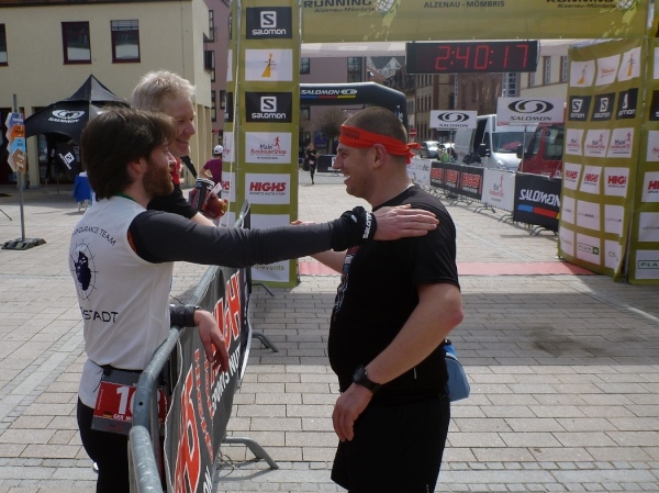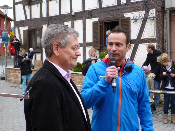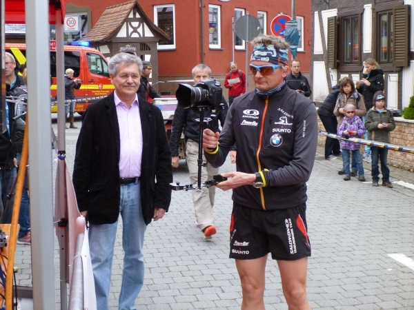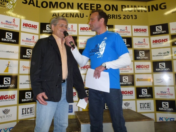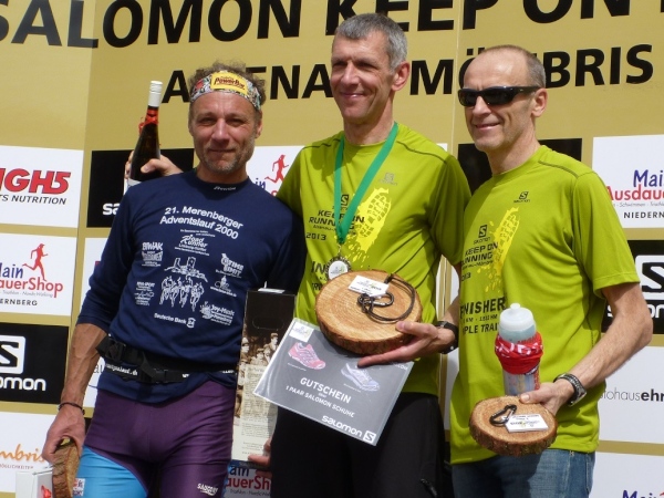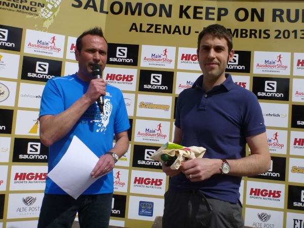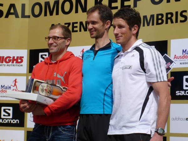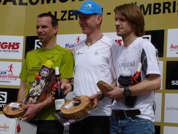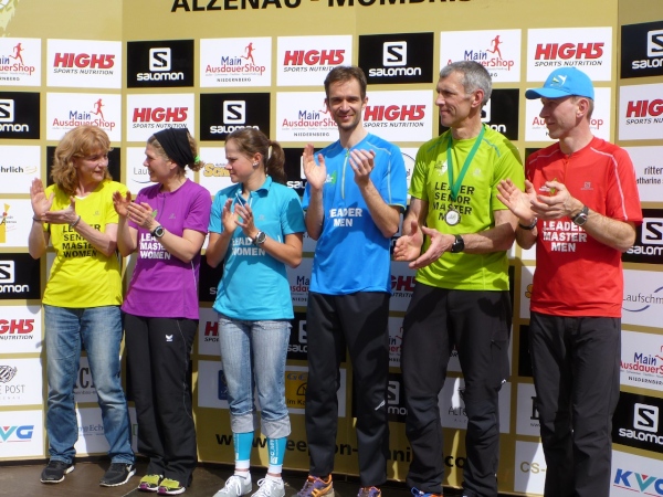 Pünktlich um 14.00 Uhr beginnt die Siegerehrung, bei der Bürgermeister Dr. Alexander Legler die Preise überreicht. Die Führenden erhalten dabei wertvolle Preise der Sponsoren. Die Chefs der Veranstalter Plan B, Heinrich Albrecht und CS-events, Sven Simon, bedanken sich bei den rund 400 Läufern und würden sich freuen, im nächsten Jahr wieder nach Unterfranken kommen zu dürfen. Ich auch.