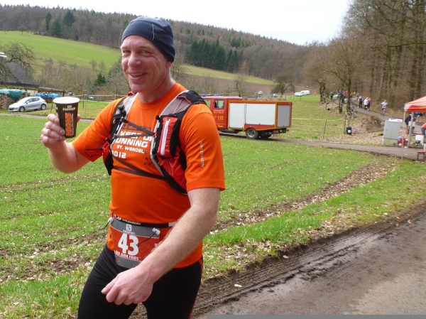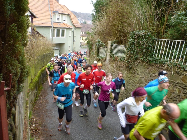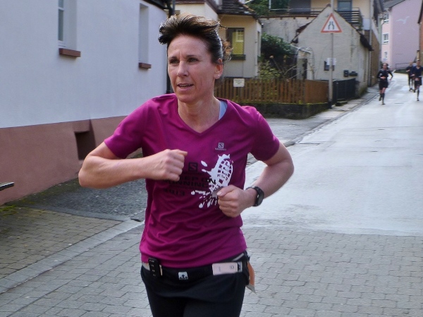 Noch rund zehn Kilometer. Wer jetzt glaubt, das Rennen auslaufen lassen zu können, der täuscht sich gewaltig. Das Höhenprofil schaut auf den letzten Kilometer eher aus wie das Blatt einer Handsäge. Auf und nieder, immer wieder. Der Kurs führt steil in den Talgrund, und stellt sich dann mit 50 bis 100 Höhenmeter dem Läufer entgegen. Die meisten werden an diesen Steigungen zum Wanderer. Nur wenige, wahrscheinlich die Spezialisten an der Spitze, werden da hinauflaufen.