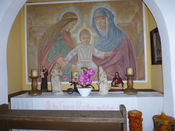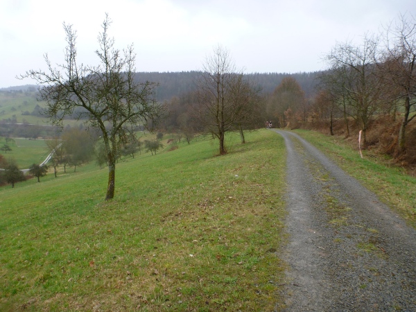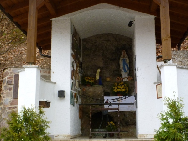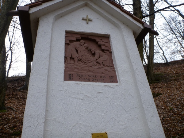 Die Ortschaften Molkenberg, Gunzenbach, Hohl und Rappach liegen allesamt unten und sind durch Höhenzüge voneinander getrennt. Wenn sich das Feld nicht auseinandergezogen hätte, könnte man unsere Jubelarien besonders an den Ansteigen hören. Zusammenreißen müssen wir uns auf dem Kreuzweg oberhalb von Hohl, Fluchen ist verboten. 1926 wurde am unteren Ende des Pilgerweges die Lourdesgrotte errichtet. Für ein Bild dieses kleinen Bauwerkes reicht die Zeit.