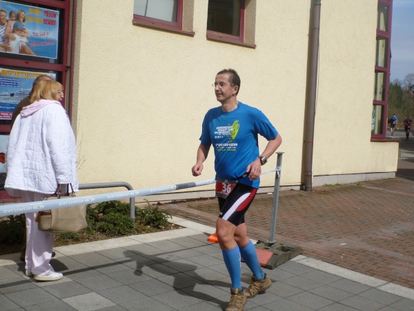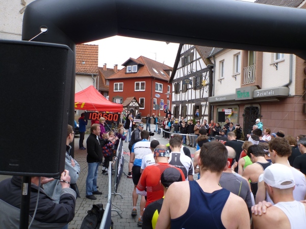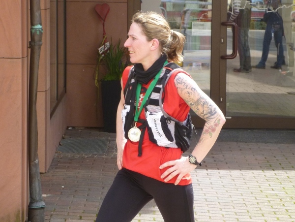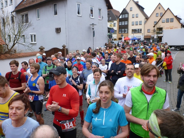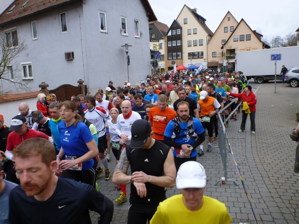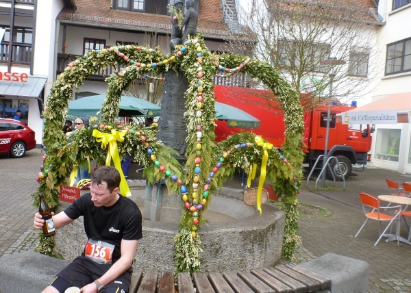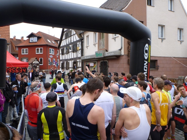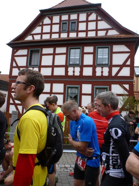 Am Morgen jaulen die Oberschenkel gewaltig vom Bergablaufen. Die Hopfenanwendung vom Vortag war nicht erfolgreich. Zeitig räume ich in der Turnhalle meine Sachen zusammen und marschiere 45 Minuten vor dem Start (10.00 Uhr) in die Ortsmitte. Da noch ein wenig Zeit ist, beschränkt sich mein Warming-Up auf eine kleine Erkundung.