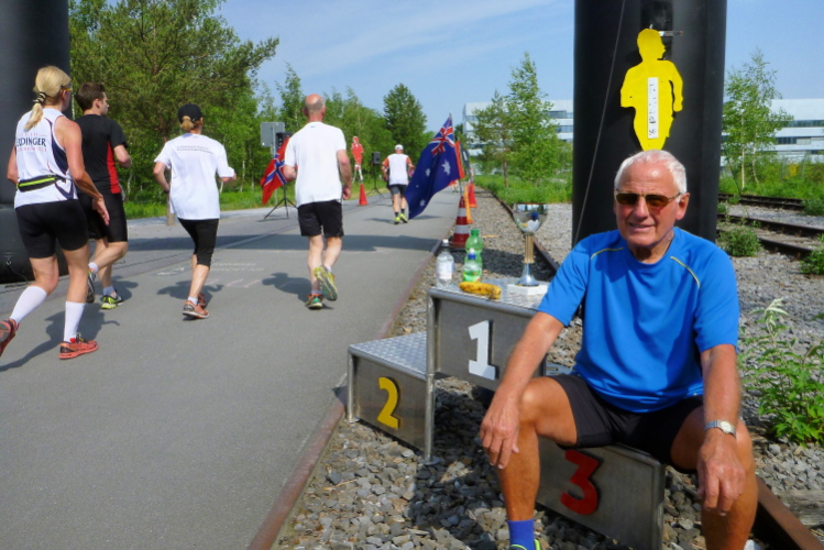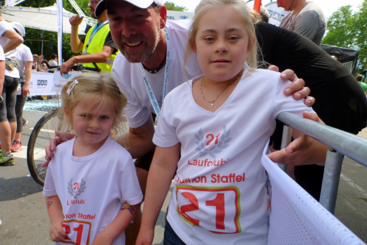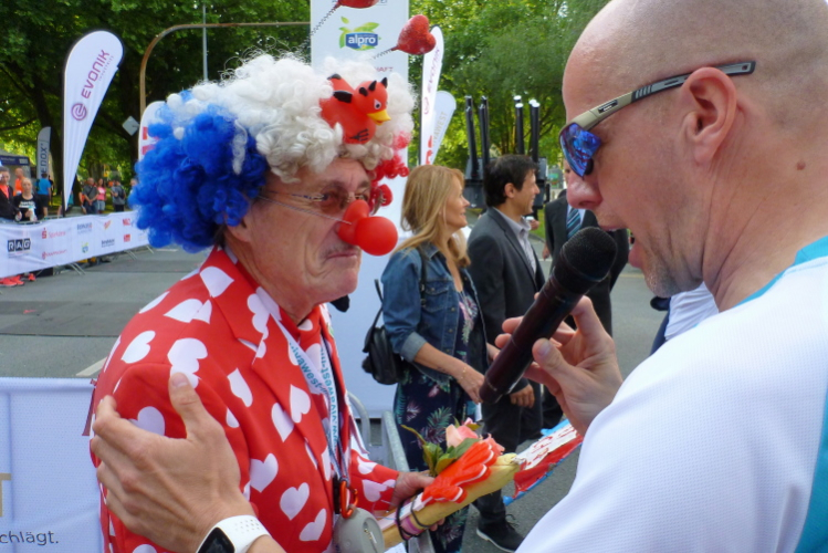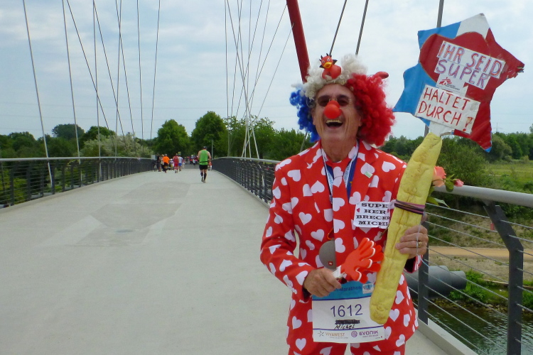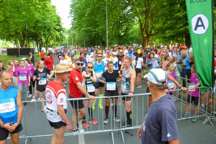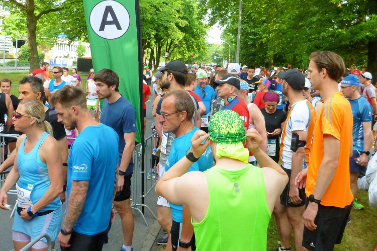 Die Zeit bis zur vorgesehenen Startzeit um 09.30 Uhr vergeht schnell. So komme ich kurz zum Reden mit Stephan, der für den Stahlbauer ThyssenKrupp in China arbeitet. Und dann sehe ich noch das große Team des Laufclub 21 mit Anita, dem Pumuckl und dem freundlichen Franzosen Michel.