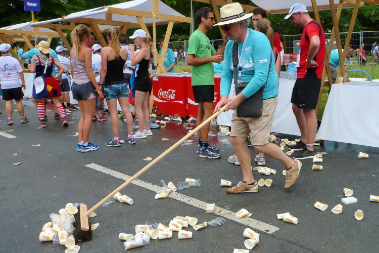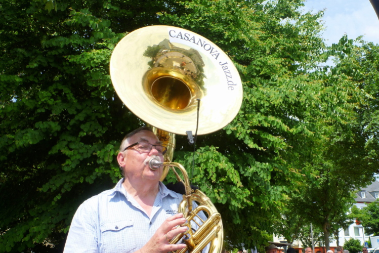 An einer Eckkneipe feuern uns zwei Zecher an: „Haltet durch – wir tun es auch!“ Dabei zeigen sie ihre Bierbäuche. Ein paar Meter weiter spielen die Musiker von Casanova Jazz flotte Dixiemelodien. Mal etwas anderes, aber gut anzuhören. Es wird hart, jede Wasserstelle brauche ich nun zum Kühlen. Ich muss zwar ein paar Meter gehen, kann aber wieder antraben. Die Restkilometer sind nun einstellig.