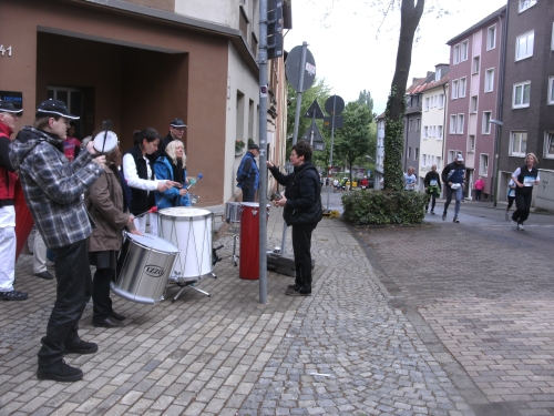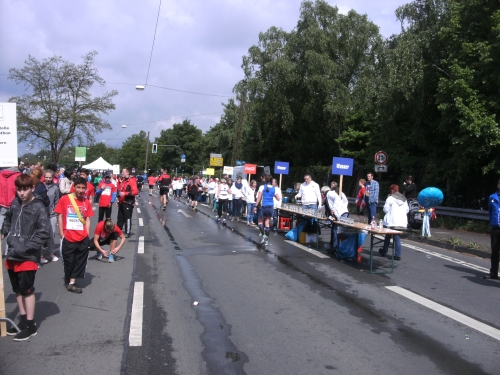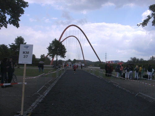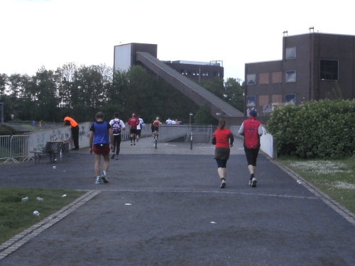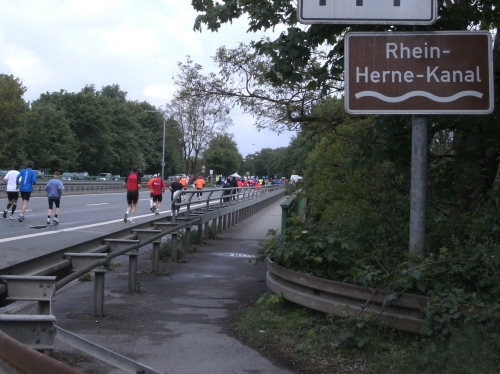 Wir überqueren den Rhein-Herne-Kanal. Wieder kommt ein Wechselpunkt für Schülerstaffeln. Ebenso ein Stimmungsnest wie die Wechselpunkte der Jedermann-Staffeln.