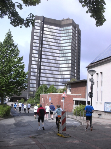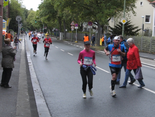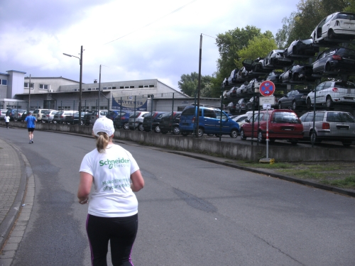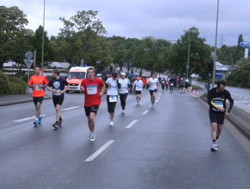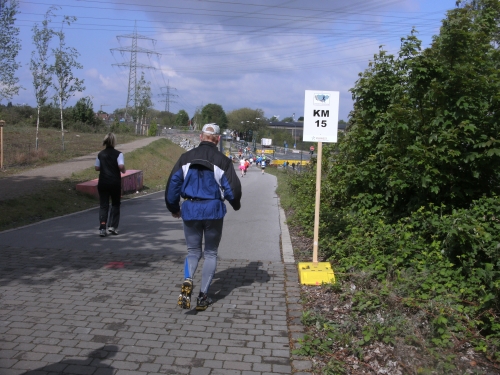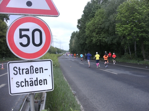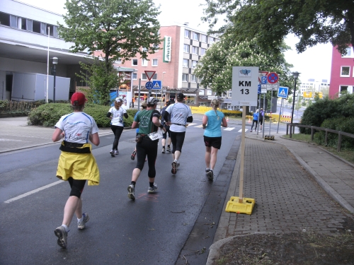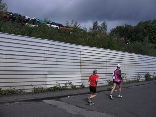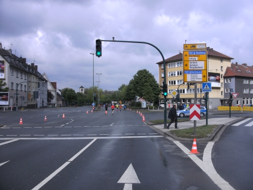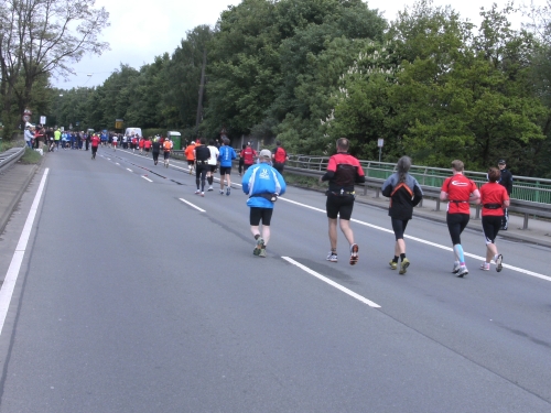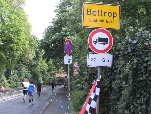 Wir verlassen Essen und erreichen Bottrop. Die Halbmarathonmarke wird überlaufen. Immer wieder werde ich von schnellen Staffelläufern überholt. Ansonsten überhole ich. Meine zweite Hälfte wird deutlich schneller als die erste.