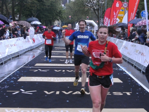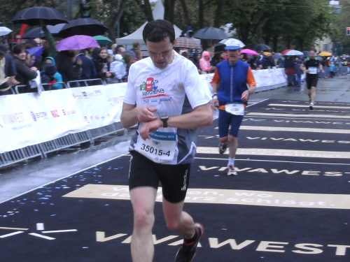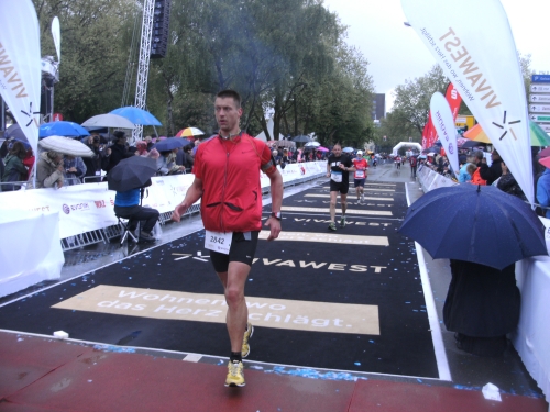 Dumm nur, dass es an der Zeche Nordstern wieder anfängt zu regnen. Zwischendurch wird der Regen sogar stärker, hört aber pünktlich zum Zieleinlauf wieder auf.