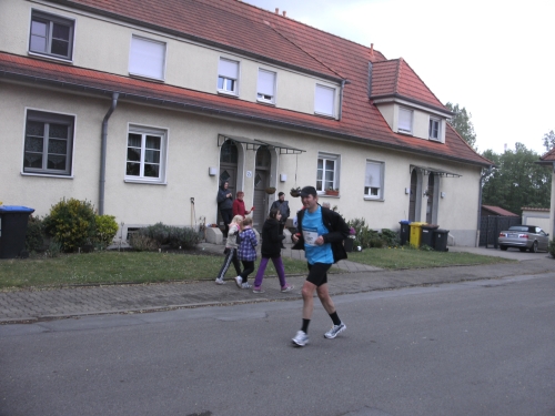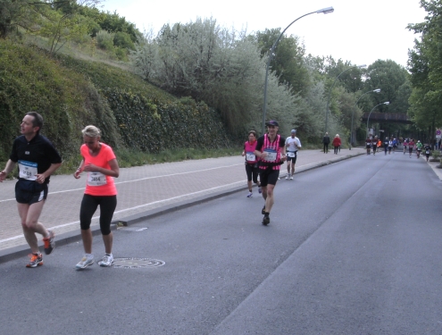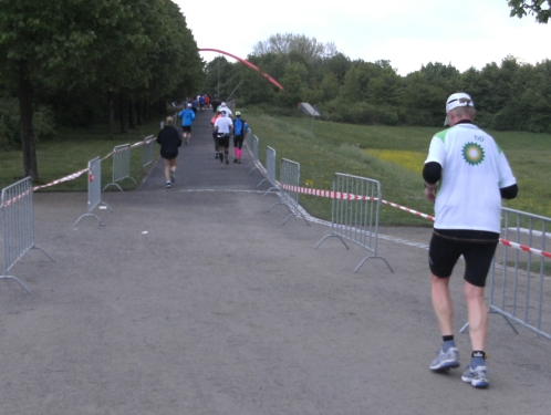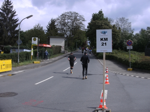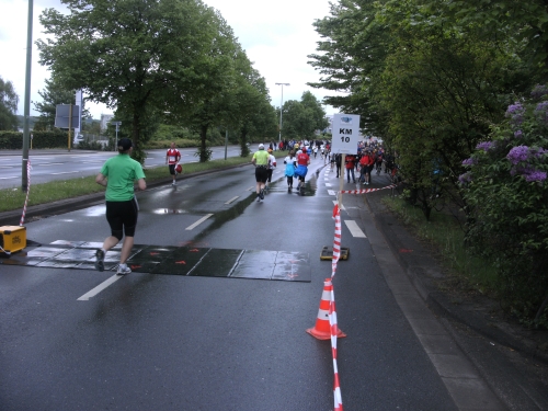 Da es keine Bergwertung gibt, lasse ich es weiter locker laufen. Allerdings sind mir die 1.07 Std. für die ersten 10 Km doch etwas zu langsam und ich laufe nunmehr etwas zügiger.