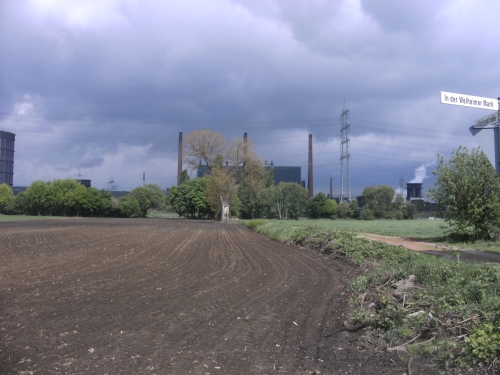 Nach Km 18 kommen wir auf eine lange Gerade, die kein Ende nehmen will. Auf der für den Verkehr gesperrten breiten Straße geht es leicht bergan. Von Bergeborbeck sehen wir jedoch nichts von der Straße aus.