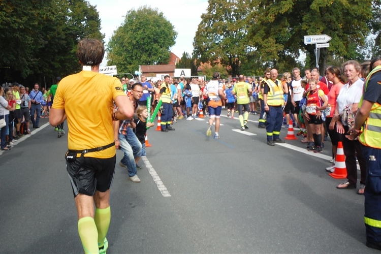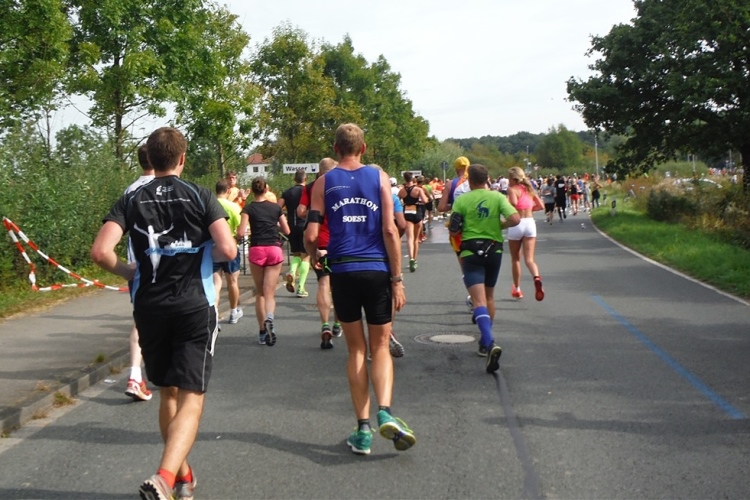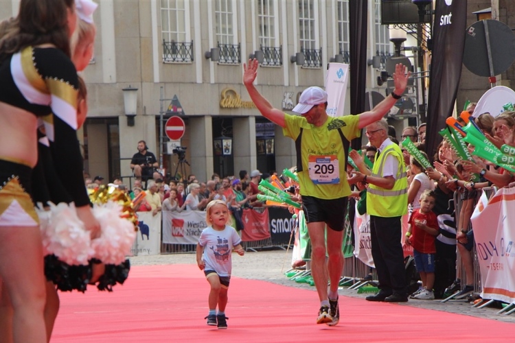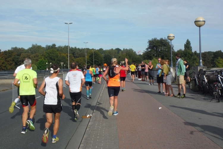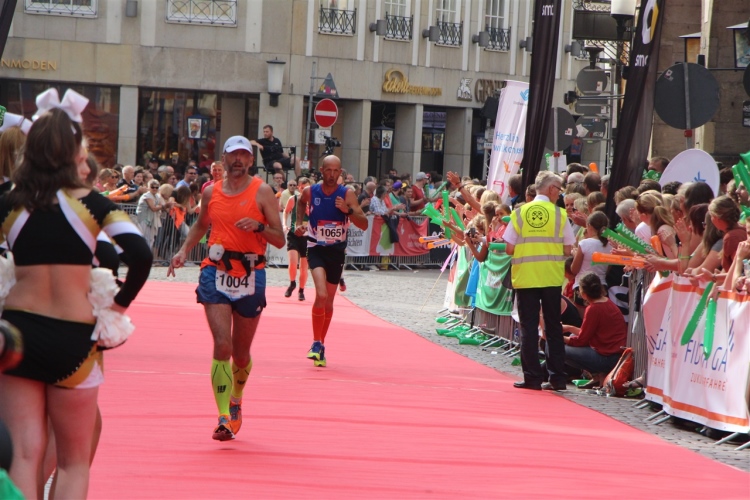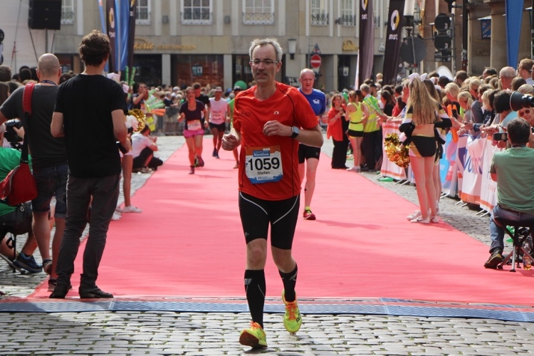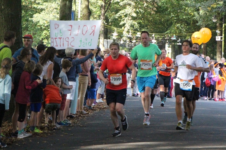 Die letzten vier Kilometer läuft es sich gar nicht schlecht, auch wenn ich häufiger überholt werde. Manchmal wehre ich mich und spiele mit einigen Mitläufern, an denen ich mich orientiere. Welches Spiel? Natürlich das, was die meisten Marathonis kennen: Mal überholst du, mal überhole ich. So komme ich ganz gut voran.