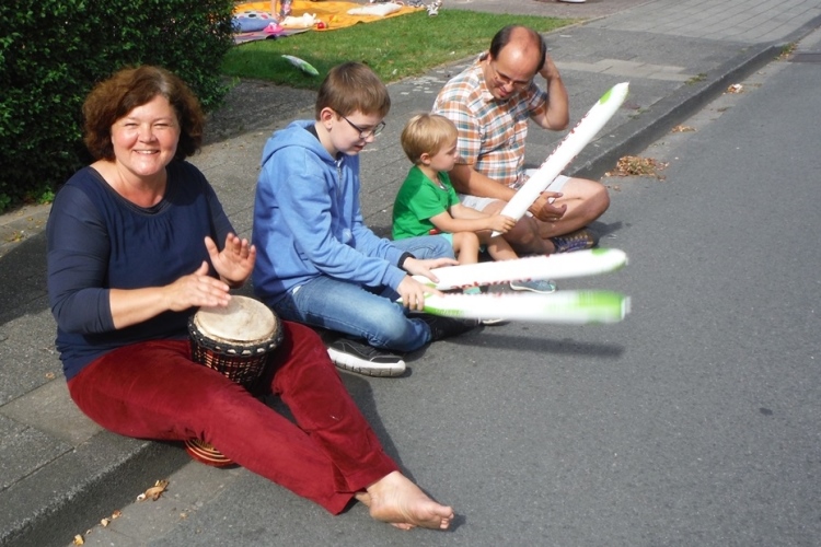 Mit dem schönen Gedanken, dass Frieden möglich ist, komme ich auf die Aegidistraße und zur Altstadtrunde. Mülltonnen sind zu Trommeln umfunktioniert, der rhythmische Lärm treibt mich in Richtung Aasee. Ich muß mich rechts halten, während die Staffelläufer links wechseln. Die Wasserfläche glitzert, viele Boote sind unterwegs. Keine schlechte Idee, den heißen Tag auf dem kühlen Wasser zu verbringen.
