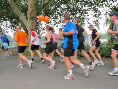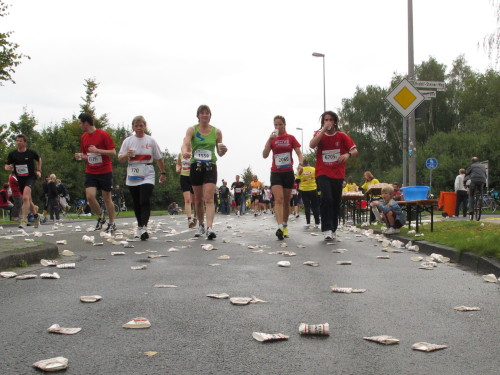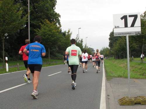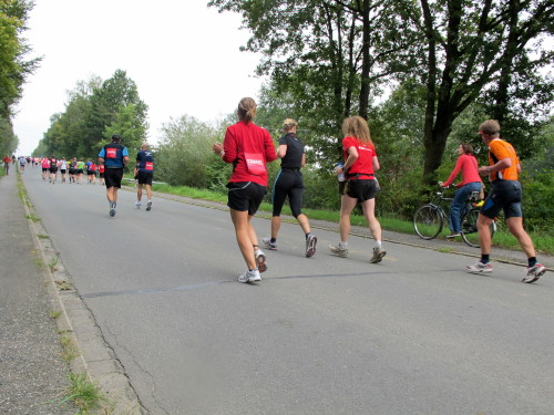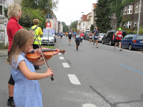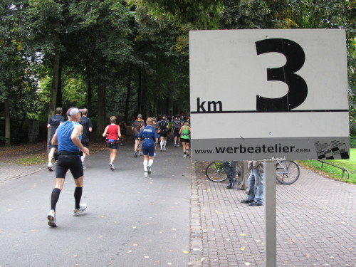 Was mir noch auffällt? Die Stadt riecht nach frischen Brötchen. Und mein Frühstück liegt schon drei Stunden zurück. Bei km 3 geht’s auf die Promenade, dem Grünen Ring um die Innenstadt, auch Fahrradautobahn genannt. „It’s all over now“ spielt unplugged eine Coverband. Na, das wäre aber schade.