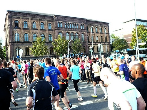 9 Uhr Start am Hindenburgplatz, direkt am Schloß. Der Platz liegt außerhalb der ursprünglichen Stadtbefestigung. Marco Diehl wird heute den dritten Platz der Deutschen machen, aber ich komme nicht da vorne in den Startblock hinein.