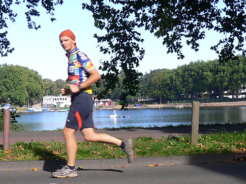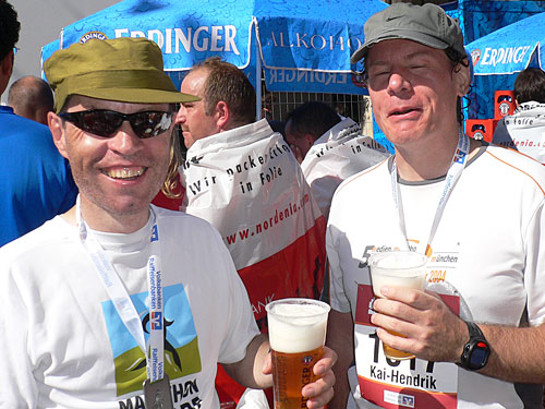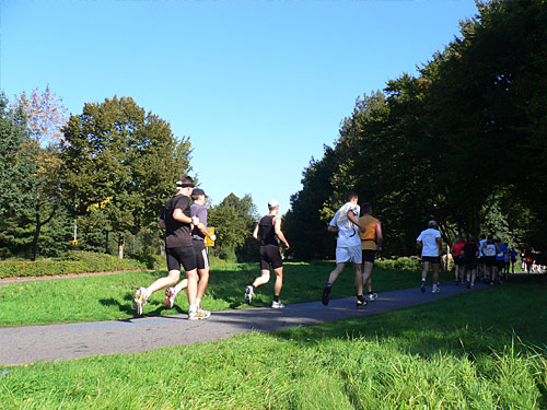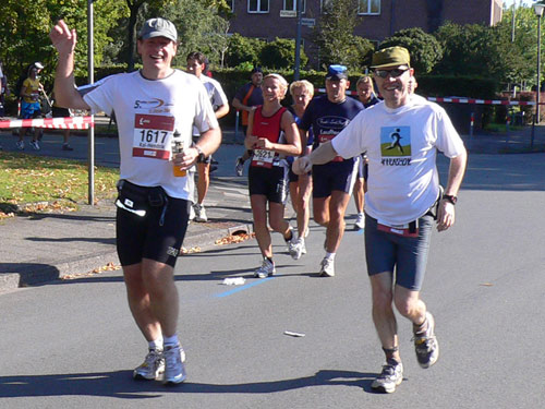 Nach ca. 2 Kilometern staunte ich nicht schlecht als ich plötzlich ein marathon4you-Shirt neben mir sah. Es war Klaus Duwe, den ich so persönlich kennen lernte. Wir liefen plaudernd gemeinsam weiter. Zu uns gesellte sich noch Kai-Hendrik aus München.