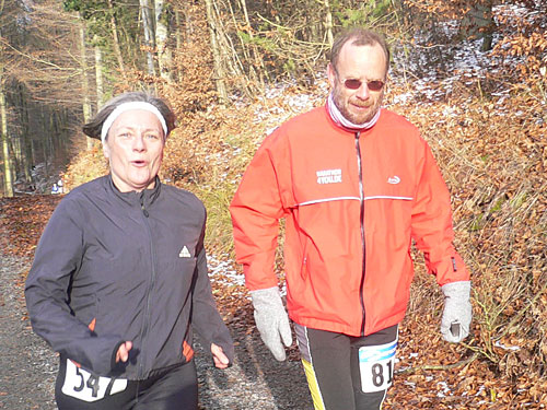 Ich hatte Elisabeth eingeholt und wir unterhielten uns angenehm. Da ich heute keinerlei Ambitionen hatte, passte ich mich ihrer Geschwindigkeit an und in einem Mix aus Joggen und Gehen schafften wir die vielleicht vier oder fünf Kilometer hoch durch den Wald. Die Sonne kam immer wieder heraus, der Wind war nicht mehr vorhanden und mir war überhaupt nicht mehr kalt. Die Handschuhe hatte ich längst ausgezogen und so versprach es, ein angenehmer Lauf zu werden – falls denn mein Trainingszustand einigermaßen passte.