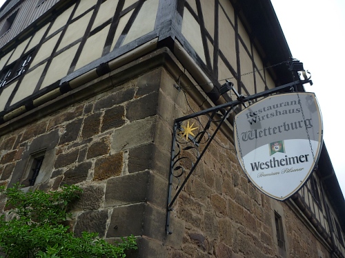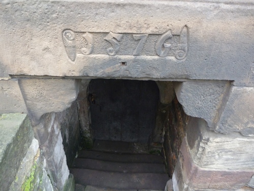 Mir ist ziemlich schummrig, zwischen Burgschänke und Schlossgasthof suche ich das Gelesene zu verarbeiten, dann zieht es mich magisch zur Wetterburg und diesem dunklen Kellerverlies, das seitdem mit dicken Eisenketten gesichert und mit grausigen Spinnweben behaftet ist, drüber steht die Jahreszahl 1576.