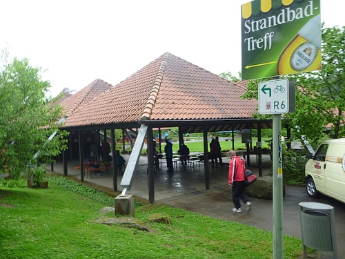 Dort beim Campingplatz gibt es auch die Angelberechtigungsscheine für den See. Manche behaupten ja Angeln sei Sport, so wie Golf. Jedenfalls hat jeder der Angler eine Bierflasche in der Hand , was Angeln dann doch in Nähe von Sport rückt. Oder hat man schon einmal einen Golfspieler mit Bierflasche gesehen?