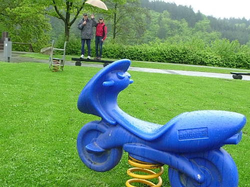 Die Duschen im Strandbad Twistesee sind warm, jedenfalls in der Herrendusche. Wie sonst erklärt sich ein mehrfaches “TrippeTrapppe, PlitschPlatsch”, das von der Damendusche ausgehend zur Herrendusche zu hören ist? Es könnte auch eine Brandteweinstonne mit dito Armen und Beinen sein. Uwe kriegt jedenfalls die Panik, meint, man würde ihn zur Siegerehrung rufen und “PlitschPlatsch” steht er naggisch auf der Wiese, weswegen ich dann doch zum Sieger gewählt und somit auch das letzte Geheimnis von Wetterburg gelüftet wurde.