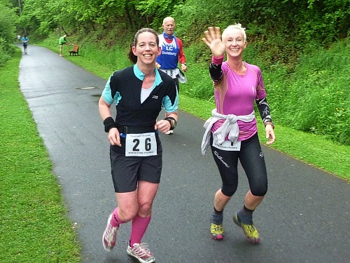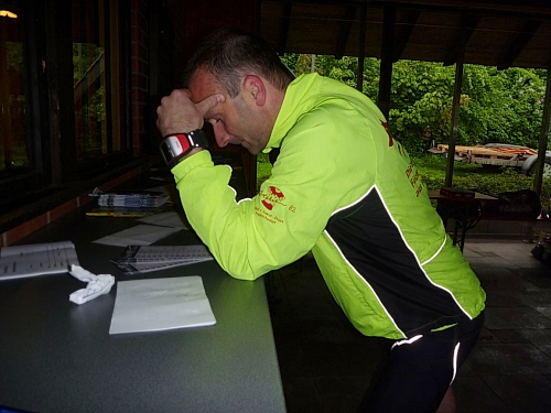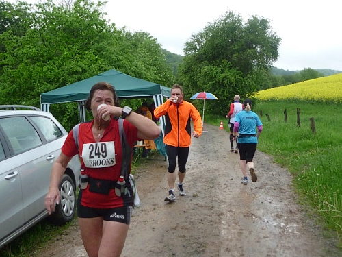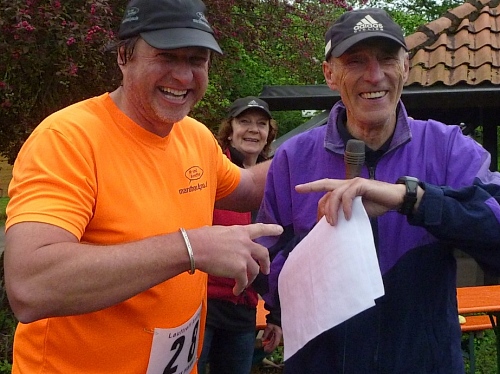Roland gewinnt beim Marathon, hätte aber lieber den 2-Rundenkurs gemacht. Dafür kann ich meine wohlausgeklügelte Taktik umsetzen: In einer Runde esse ich nur Nussecken, in der anderen nur Rhabarberkuchen und die Getränkeaufnahme erfolgt aus Eigenbeständen im Start/Zielbereich, was den Heinrich jedes Mal sehr verwundert. Aber schließlich bin ich weder Jahrgang 1941, noch habe ich 2012 eine persönliche Bestleistung von 2:43 auf 800 Meter vorzuweisen.