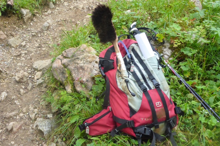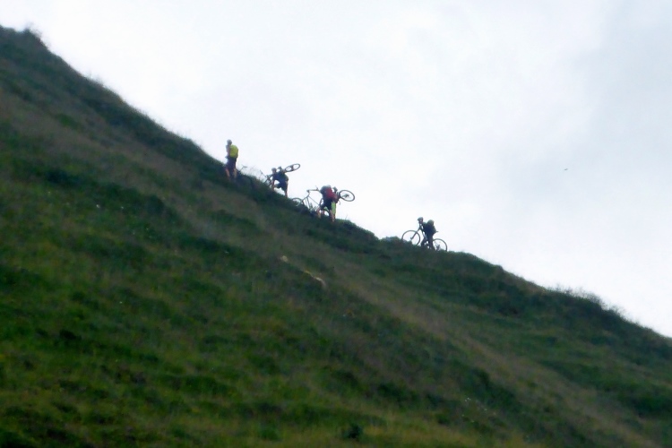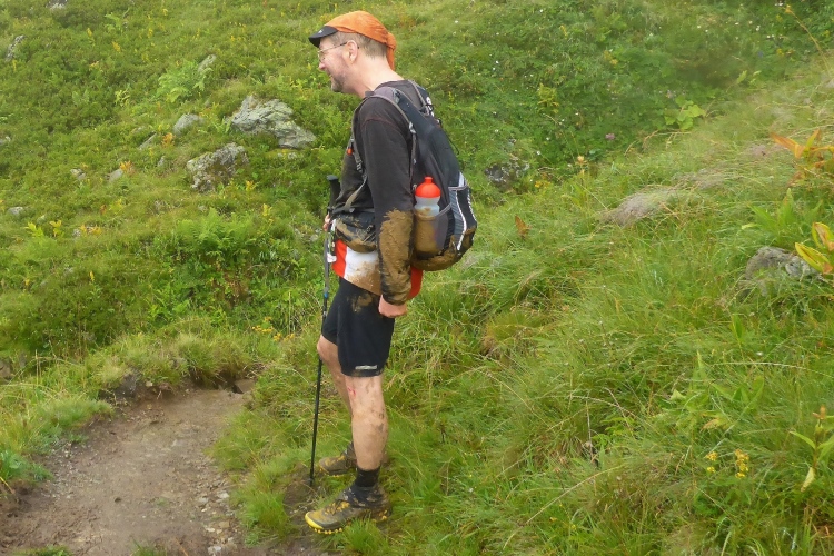 Es folgen noch ein paar amüsante Schlamm-Rutschereien. Mich erwischt es ausgerechnet nicht an einer steilen Stelle, sondern auf einem absolut flachen Abschnitt. Mit dem Rucksack nach unten liege ich mitten im Schmodder. Von Kopf bis Fuß ordentlich eingesaut laufe ich weiter. Elke muss gleich ein Foto machen.