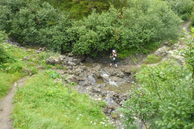 Etwas essen, mit den sehr netten Helfern plaudern, dann laufe ich ein paar hundert Meter die Straße hinab, bis der nächste Aufstieg beginnt. Ich fühle mich sehr gut. Kein Zweifel, dass ich bei der nächsten VP mehr Abstand zum Schluss haben werde.