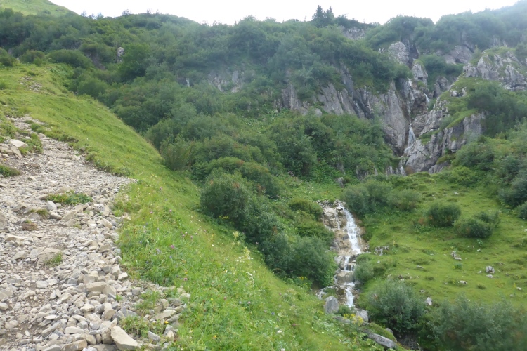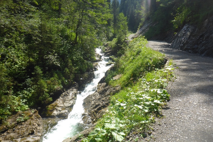 Im Winter ist der Wanderweg zwischen Baad und der Bergunthütte hervorragend präpariert und zum Lauftraining ideal geeignet, ebenso wie der Panoramaweg von Hirschegg nach Baad, den ich ebenfalls schon im Schnee gelaufen bin. Heute können wir aber die Variante entlang des Baches nehmen.