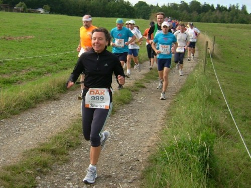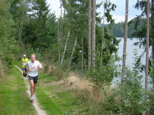 Die letzten Wanderer und Walker werden überholt. Ich grüße auch noch Sportler aus dem oberbayerischen Mettenheim. Dann auf den letzten Kilometern kann ich noch auf eine Frau auflaufen. Frauke Reuter aus Erfurt ist jetzt auch froh, dass das Rennen zu Ende geht. Wir laufen dann gemeinsam ins Ziel, wo dann ihre zwei Kinder und die Oma schon sehnsüchtig warten.
