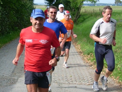 Es bleibt crossig. Andreas Menge kommt aus der Gegend, kennt seine Heimat und mag auch die Natur. In zwei Wochen geht er wie ich nach Berlin und läuft da Marathon. „Da kannst Du leicht Bestzeit laufen“, gebe ich noch als Rat auf den Weg. Für ihn ist heute das eine Generalprobe für den Lauf in unserer Bundeshauptstadt.