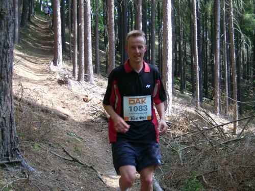 Oben bleibe ich stehen und fotografiere. Mirko Haucke aus Weißendorf, also ein Einheimischer, sieht mich und spurtet noch die letzten Meter hoch. „Mach Dich nicht hin“, sage ich. „Mir reicht eine Runde“, entgegnet er. Dafür bekommt er ein „dann quäl Dich Du Sau!“