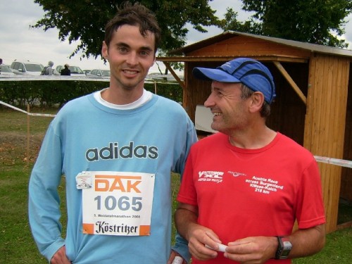 Ich verpflege ausgiebig und mache mich dann auf die zweite Runde. „Auch ein Genussläufer“, so schätzen mich Jürgen Klöpfel aus Rudolstadt und Bernd Vogelmann aus Cursdorf-Meuselbach ein. Für beide ist nach 32 Kilometer Feierabend.