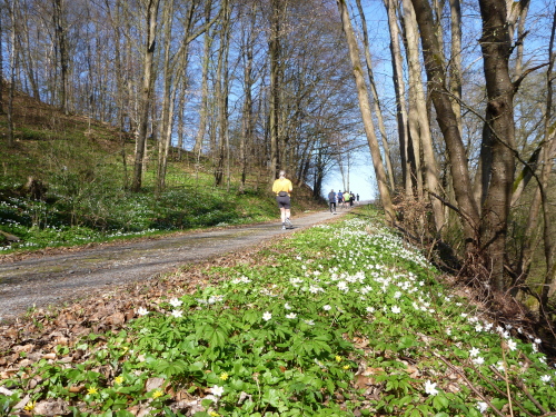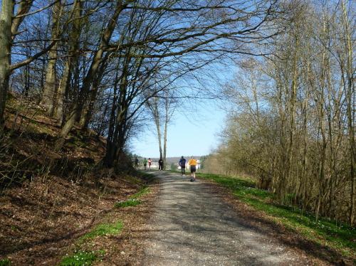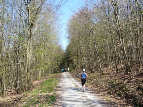Gut 300 Höhenmeter haben wir seit dem Start verloren und ich meine, die Natur ist hier etwas weiter. Tatsächlich zeigen die Buchen jetzt schon häufiger ihre leuchtend grünen Blätter, die ich so mag. Deshalb wohne ich auch im Buchenweg.