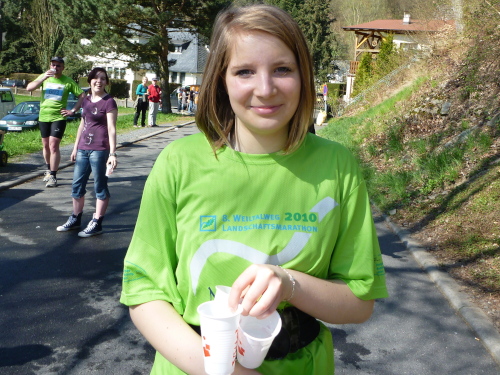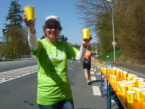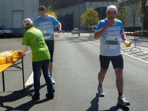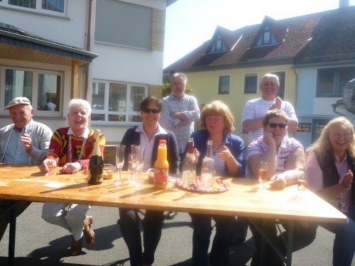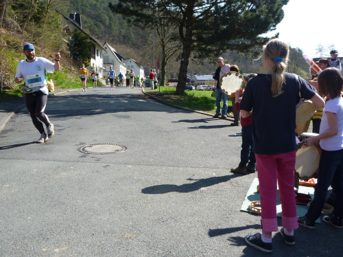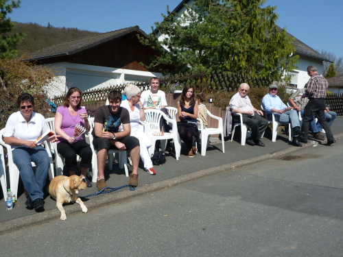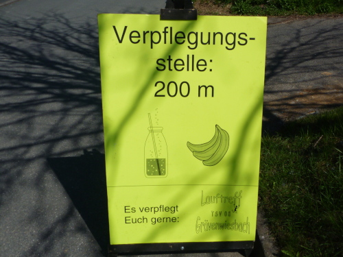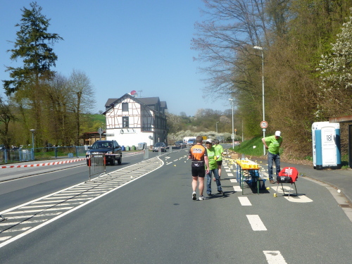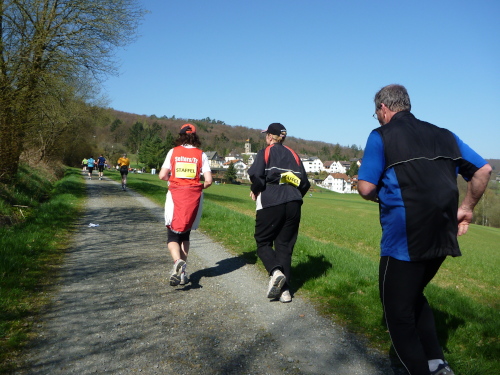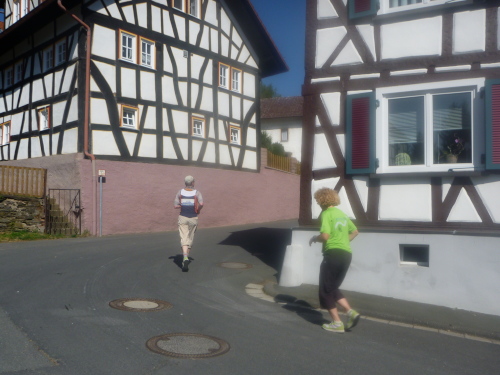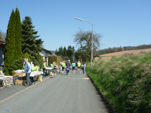 Emmershausen (ca. km 20) hat nur gut 400 Einwohner. Fast genauso viele Läuferinnen und Läufer samt Begleiter und Organisationspersonal werden heute hier gewesen sein, als um 10.30 Uhr der 23 km-Lauf gestartet wurde. Übriggeblieben ist davon eine Stunde später nur noch eine lustige Frühstücksrunde.