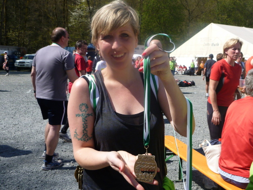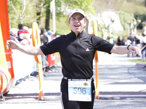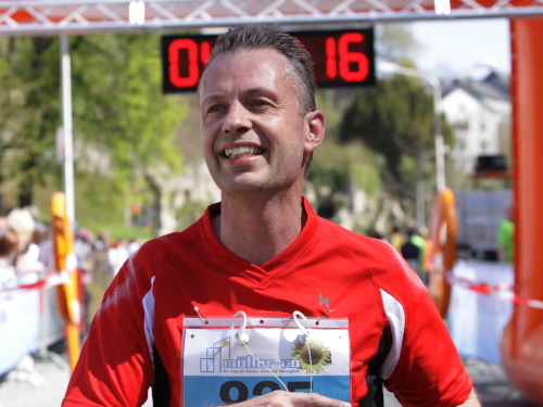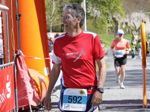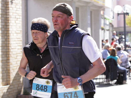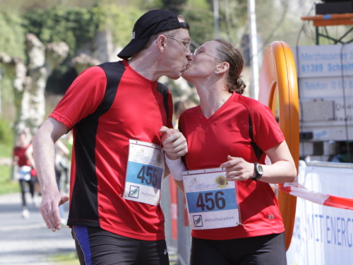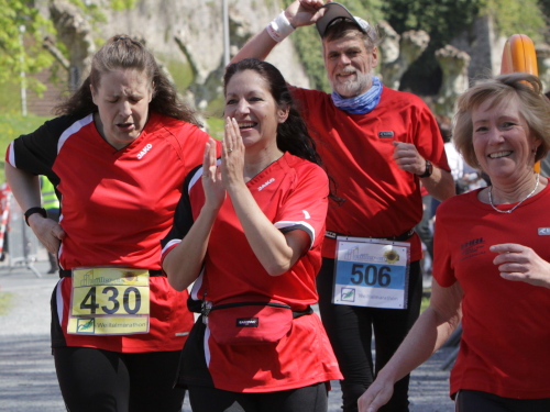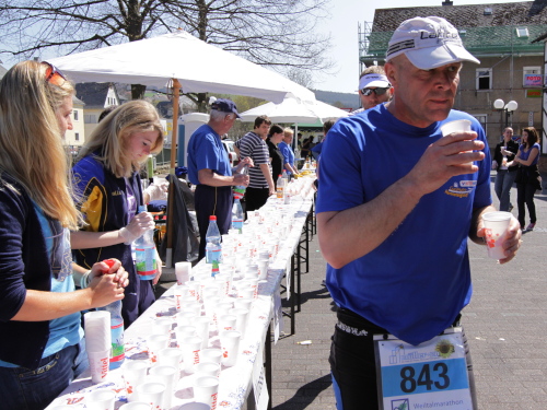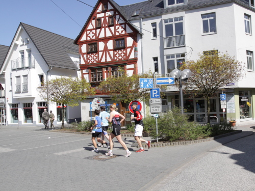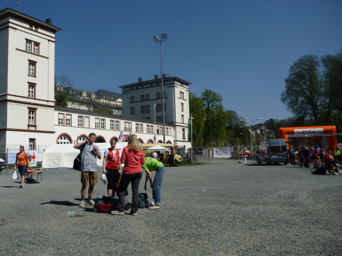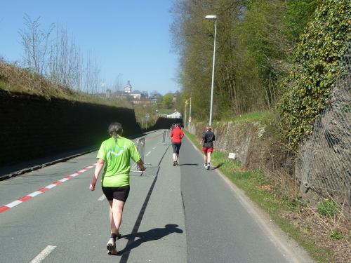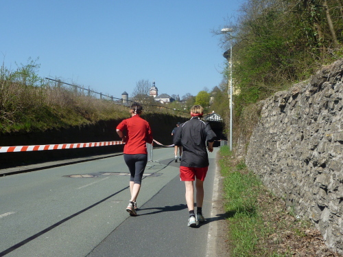 Nächste Woche? Da habe ich anderes vor. Aber zuerst muss ich diesen Lauf zu Ende bringen. Noch zwei Kilometer. Wir sind auf der Hauptstraße, die einseitig gesperrt und in der Gegenrichtung nur eingeschränkt befahr ist. Noch einmal gibt es Getränke und dann sieht man schon das alles überragende Schloss, eine der bedeutendsten barocken Schlossanlagen in Hessen. Links geht es in die Hainalle. Unser Flüsschen Weil, fast von der Quelle bis hierher unser Begleiter, ist mittlerweile in die Lahn geflossen, an deren Ufer der große Festplatz liegt. Gegenüber der alten Hainkaserne ist der Zieleinlauf, den viele Zuschauer verfolgen. Jeder Finisher wird namentlich begrüßt, freundlich beklatscht und mit der Medaille geschmückt.