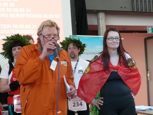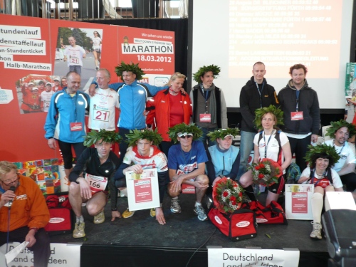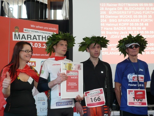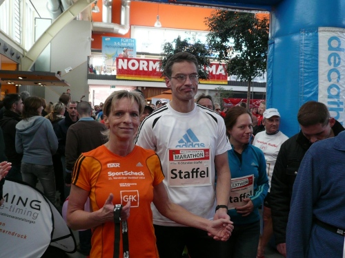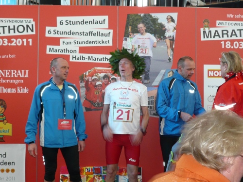 Fazit: Wer noch nie 6 Stunden gelaufen ist, muss das hier probieren. Robert hat das ganze Ambiente so toll empfunden, dass er nächstes Jahr den langen Kanten wagen möchte. Termin ist dann am 18.03.2012. Anita lädt schon heute dazu herzlich ein. Wer kommt mit? Eine tolle Sache, für die wir da in Fürth laufen dürfen.