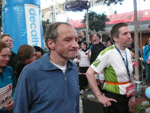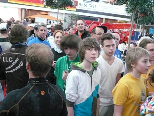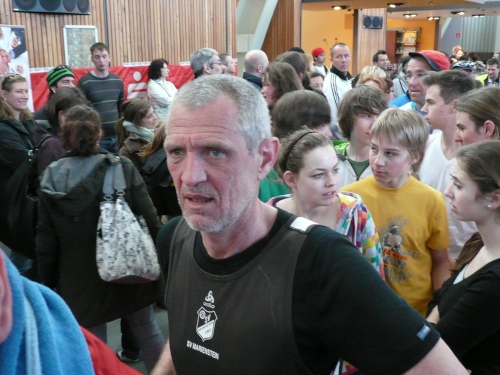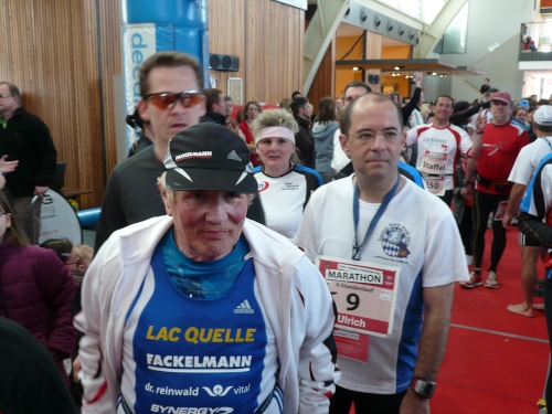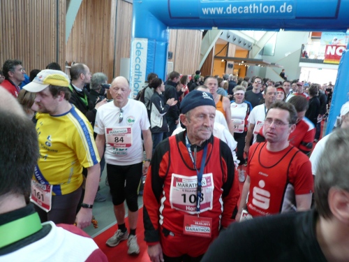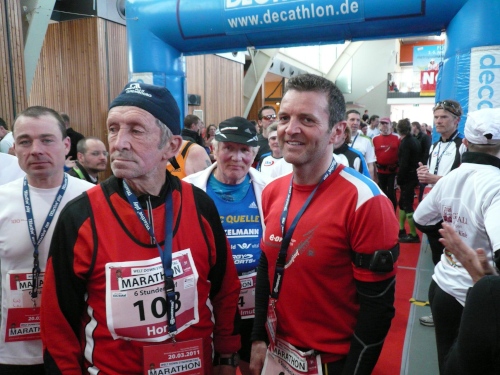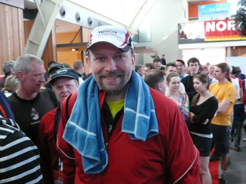 Zum wiederholten Mal überholt mich Robert. „Noch diese Runde,“ ruft er mir zu. Und: „Es geht unter 1.30 Stunden.“ Ich plärre ihm ein „Hau rein“ und „Quäl dich du Sau“ hinterher. Als ich die Halle durchlaufe, hebt Robert den Daumen nach oben. Sein Plan geht auf und eine neue persönliche Bestzeit mit 1.29.49 Stunden hat er auch gesetzt. Später höre ich, dass es für Gesamtrang vier gereicht hat. Da ist ein Platz in der bayerischen Seniorenbestenliste 2011 sicher.