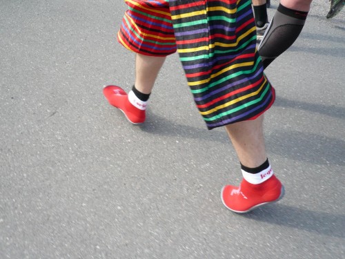 Aus meinem Verein sind wir zu dritt. Robert versucht sich zum ersten Mal auf den sechs Stunden und der Roland will an der Spitze des Halbmarathonfeldes mitmischen. Kurz vor acht Uhr sind wir vor Ort und finden mit ein wenig Gekurve einen Abstellplatz für’s Gefährt.